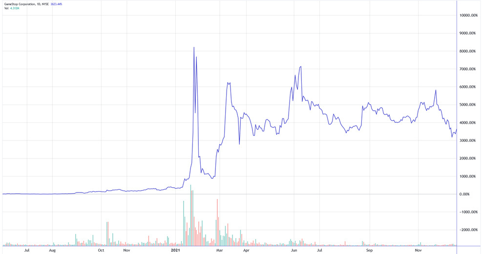 Without enough data to work with, AI traders overwhelmingly failed to make the best out of the GME saga, unlike many retail traders. Image by TradingView.